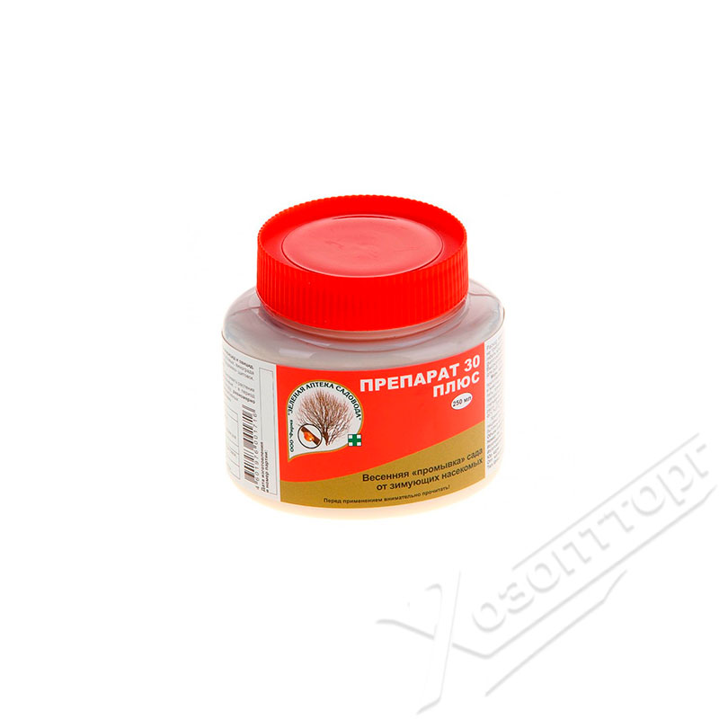 Средство защиты в виде минерально-масляной эмульсии является инсектицидом. Средство разработано для защиты от вредных насекомых садовых деревьев и кустарников. Уничтожает вредителей, скрывшихся на зиму под корой или в приствольной почве: тлю, клещей, белокрылок, моль, ложно-щитовку и щитовку, медяниц и др.Эмульсия разводится с водой в разных пропорциях для разных видов растений. Препаратом «30 плюс» рекомендуется обрабатывать растения весной до цветения в безветренную погоду при t° не ниже 4°С. Повторную обработку можно провести в летний период, в случае появления вредных насекомых. Нельзя применять препарат во время формирования завязи на плодовых деревьях и кустах.