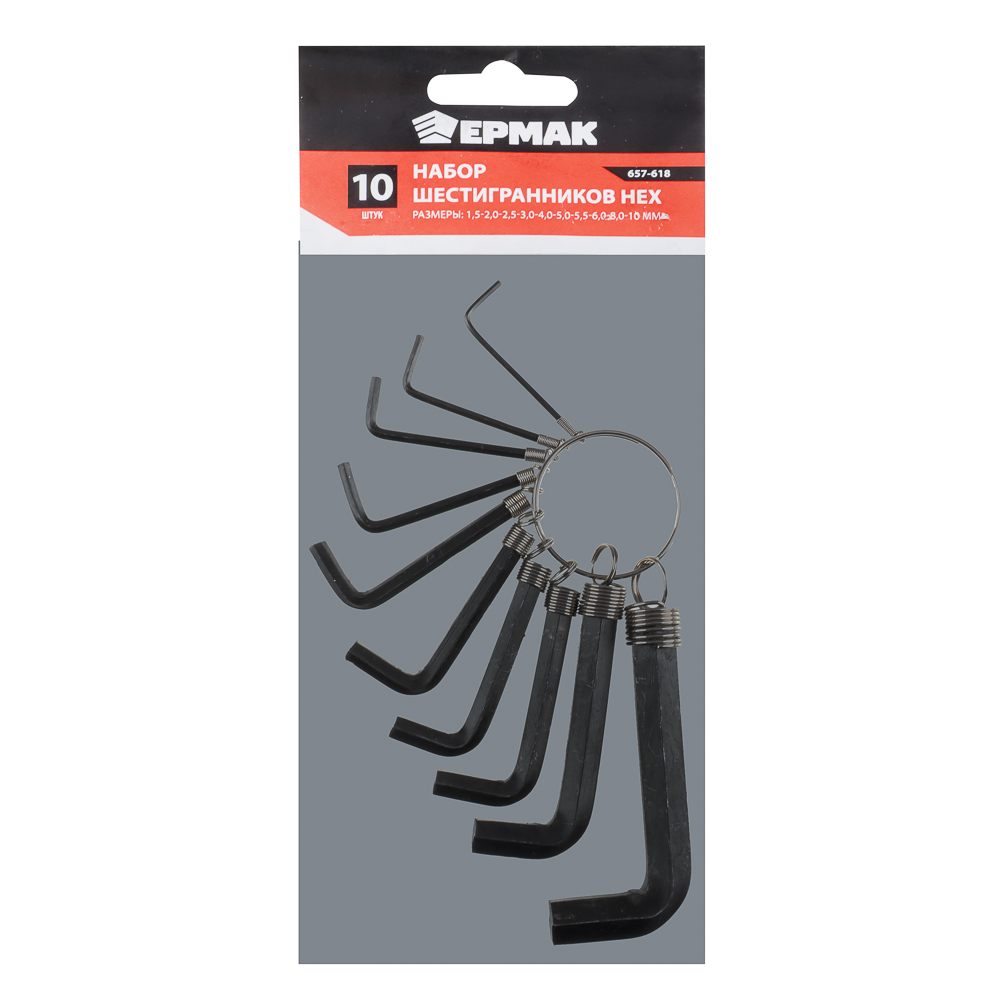 Если вы устали искать нужный вам по размеру шестигранник в огромной коробке с инструментами, то Вам просто необходим набор шестигранников! Все шестигранники соединены посредством кольца, чтобы весь набор всегда был под рукой. Ключи, выполненные из высококачественного металла, оптимизированы для работы в труднодоступных местах. Набор состоит из 10-ти шестигранников разного размера.