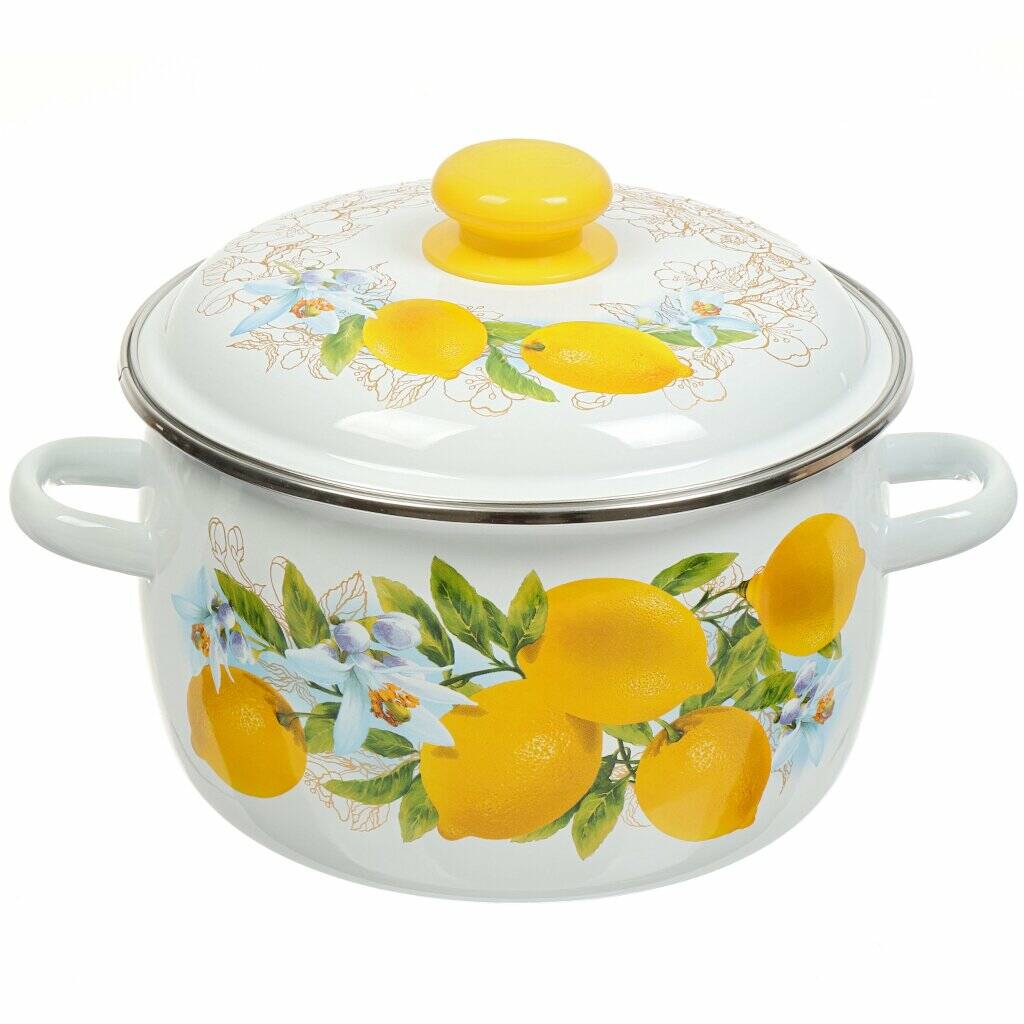 Кастрюля 4л сферическая ободком, белая, Лимоны 3MC201P