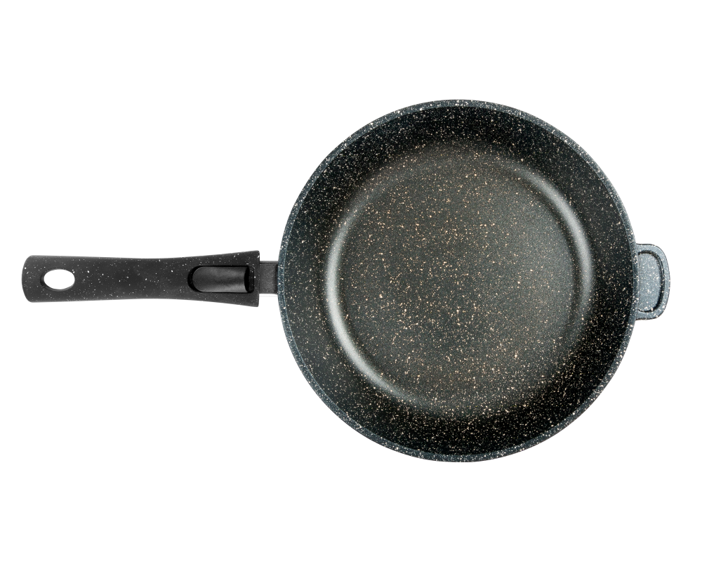Литая алюминиевая сковорода с антипригарным покрытием – оригинальная посуда ТМ Горница, которая подходит для газовых, электрических, стеклокерамических плит. Необходима для приготовления различных продуктов: мяса, овощей, рыбы и т.д. «Гранит». Коллекция «мраморной посуды» с улучшенным четырёхслойным антипригарным покрытием. Дополнительный слой с мраморным эффектом увеличивает износостойкость и создаёт оттенок чёрного мрамора. Сковорода литая изготовлена из пищевого алюминия без канцерогенных веществ. Антипригарная сковорода имеет толстые стенки и утолщенное дно, что способствует равномерному распределению тепла и создает благоприятные условия для качественного процесса готовки. Антипригарное покрытие на водной основе не содержит вредных химических соединений. Посуда металлическая имеет гладкую поверхность, что облегчает процесс мытья. Сковорода со съёмной ручкой применяется в духовом шкафу. Ручка для сковороды из бакелита не нагревается и не выскальзывает из рук.