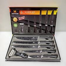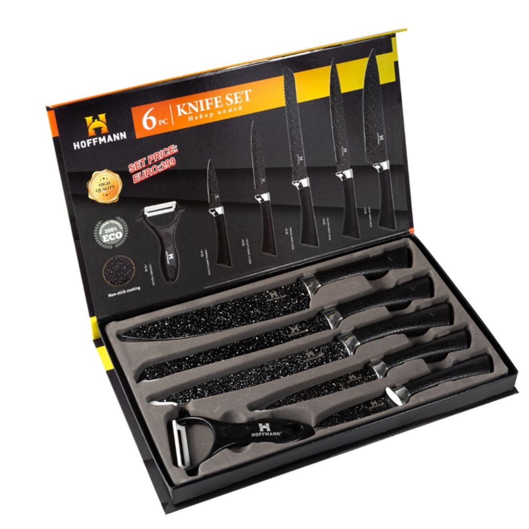 Набор ножей 6 предметов НМ 6641 - это незаменимый помощник на вашей кухне. В него входят различные виды ножей для нарезки мяса, овощей и других продуктов. С их помощью вы сможете легко и быстро приготовить любое блюдо, будь то сложный кулинарный рецепт или простая нарезка овощей для салата.