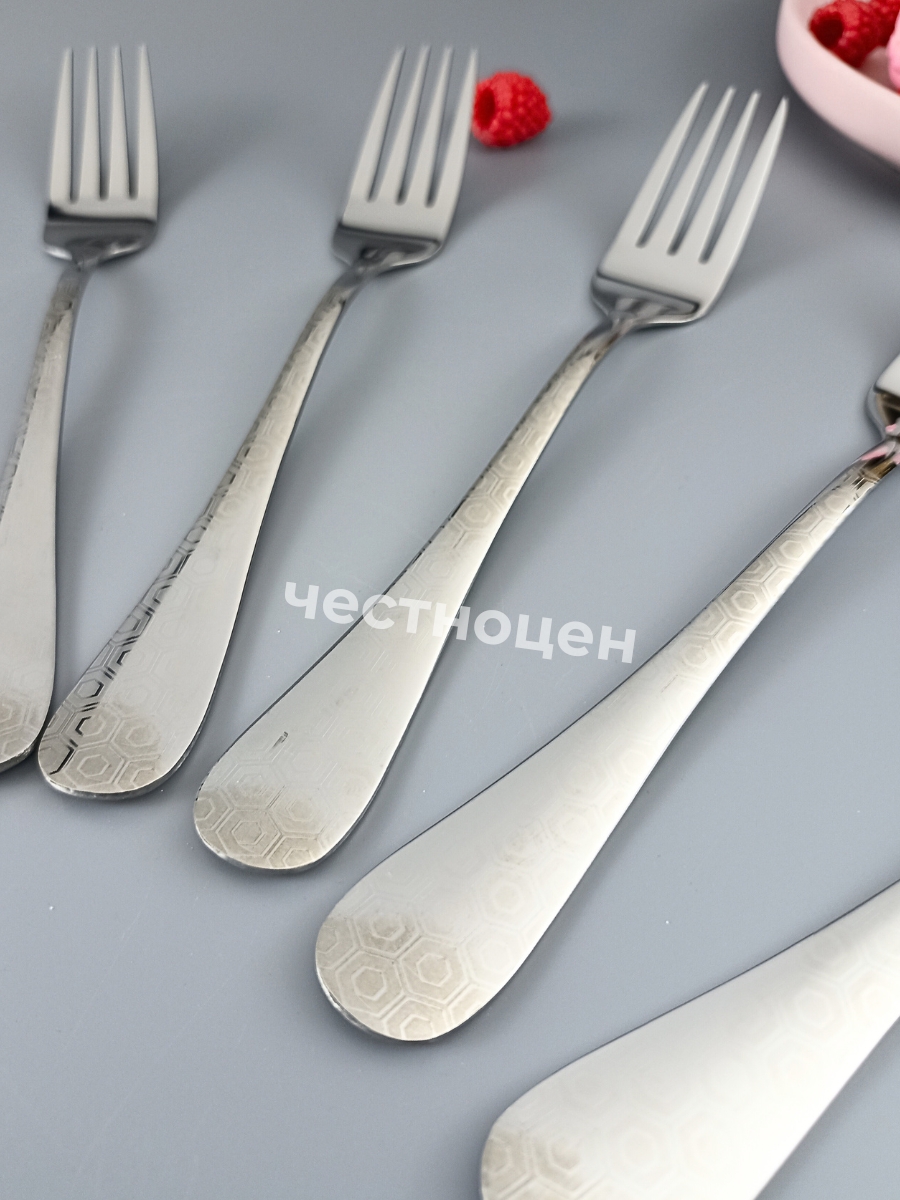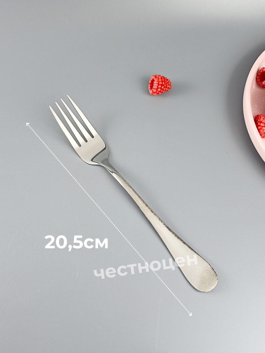Столовая вилка станет украшением праздничного ужина и гордостью хозяйки. Вилка из нержавеющей стали не темнеет и не деформируется от высокой температуры. Изделие сохраняет изысканную красоту в течение всего времени использования.
