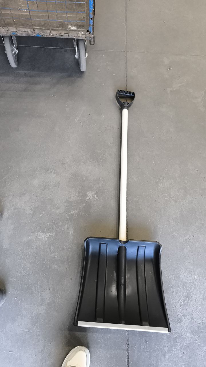 Снеговая лопата МЕТЕЛЬ №1 пластмассовая с оц.планкой 380х365мм, ø-32 с дер. черенком и V-руч. 13055