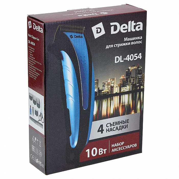 Машинка для стрижки Delta DL-4054 обладает стильным и эргономичным дизайном. В ней установлен вибрационный мотор (10 Вт), делающий ее удобной для самостоятельного выполнения стрижки в домашних условиях. Причем пользоваться такой машинкой сможет даже новичок. Выбрать нужную длину стрижки (3-12 мм) можно поменяв съемную насадку, которых в комплекте с машинкой предусмотрено 4 штуки. А также есть 5 установок длины, которые выбираются при помощи специального регулятора.