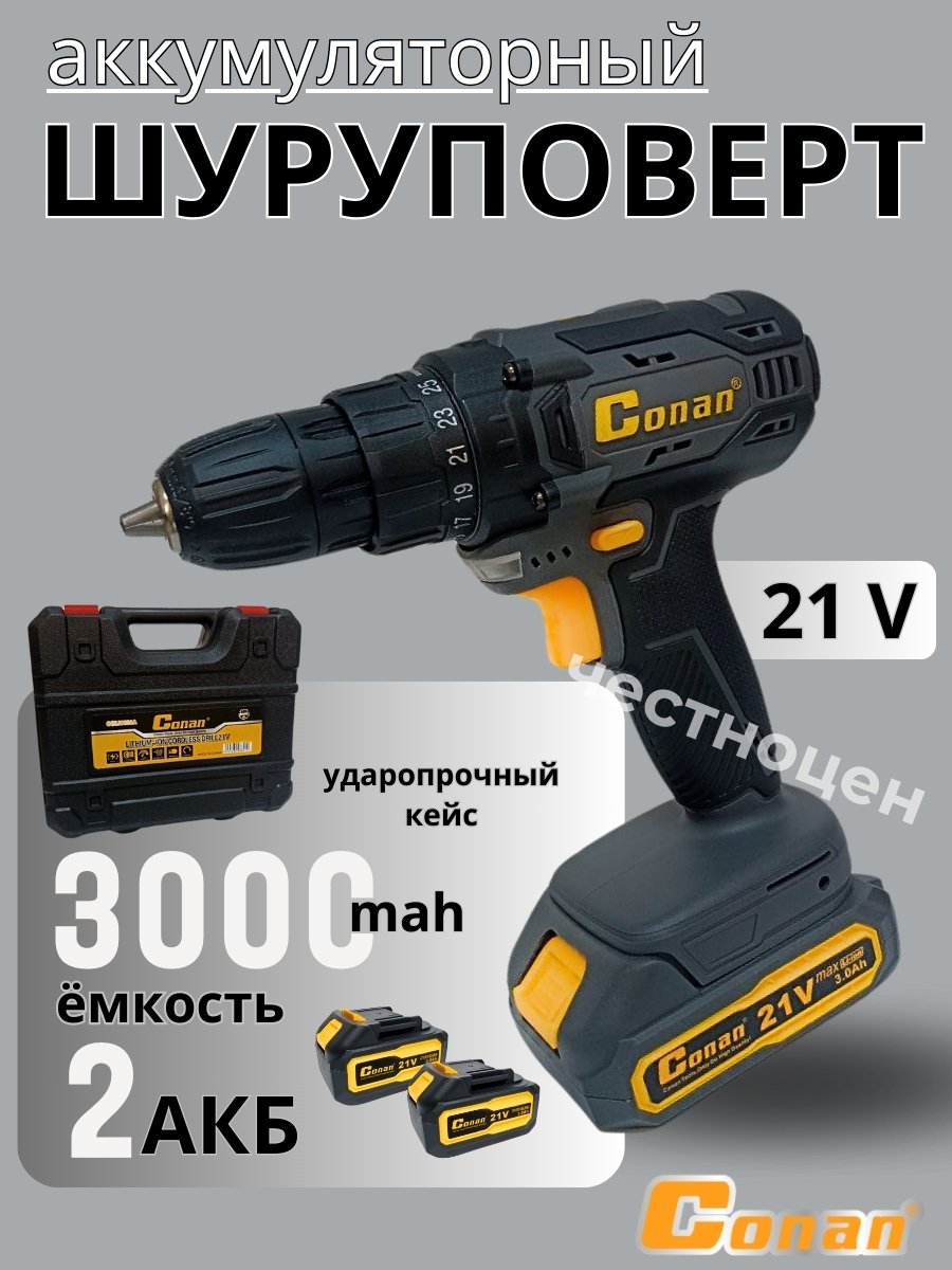 Шуруповерт аккумуляторный Conan литий-ионная, 21В (две батареи) COLI0821A OLS-778-72
