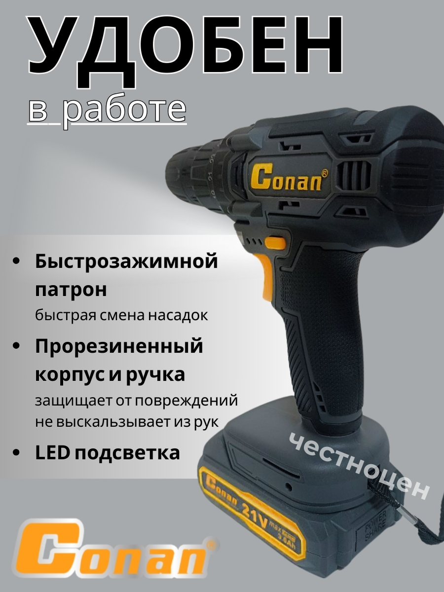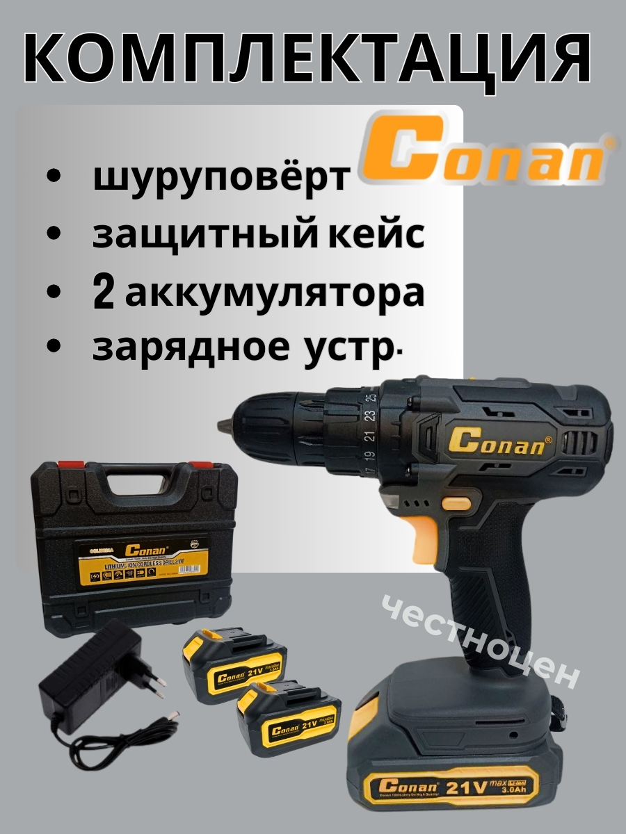 Шуруповерт аккумуляторный Conan литий-ионная, 21В (две батареи) COLI0821A OLS-778-72