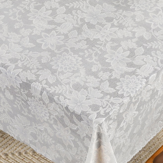 Клеенка для стола матовая (с перламутровым блеском) кружевная Лэйс Лайт из ПВХ без основы удобна в эксплуатации и является хорошим вариантом для практичной хозяйки, ведь она не только защищает стол, но также выполняет декоративную функцию.