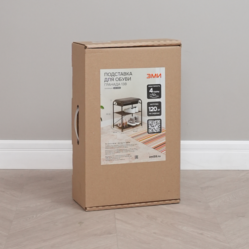 Подставка для обуви ЗМИ Гранада 13В_НБК с сиденьем и ящиком ткань нубук черный ПДОГ13ВНБК предназначена для хранения обуви.