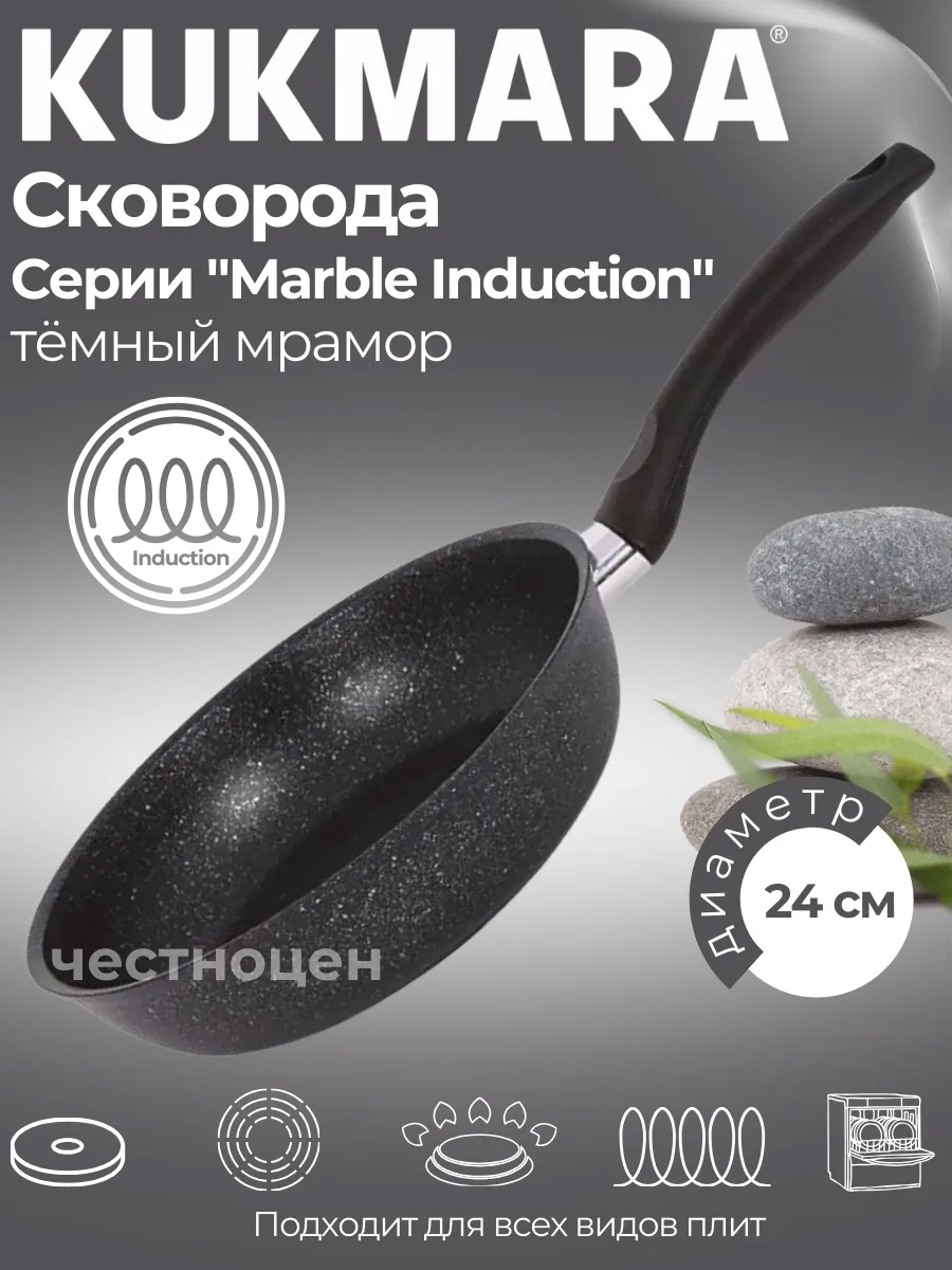 Сковорода 240мм с ручкой, ап (темный мрамор) линия "Marble Induction" смтиш240а