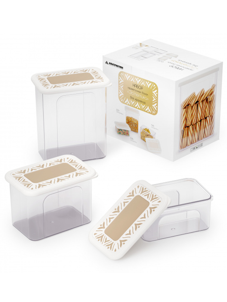Набор банок для хранения сыпучих продуктов "Эстетика" прямоугольные (бело-бежевый) М8749