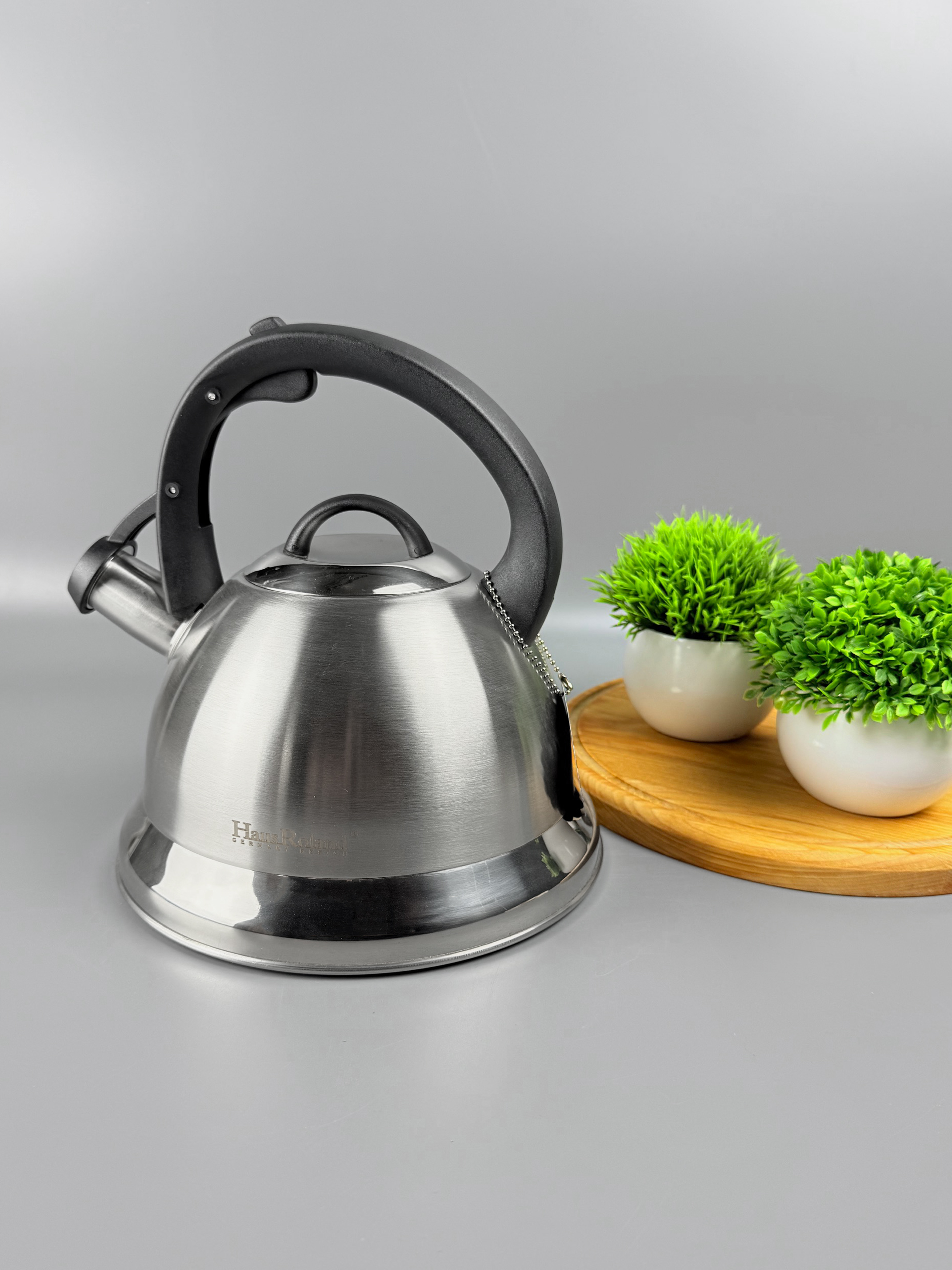 Чайник для плиты из нержавеющей стали, в классическом корпусе со свистком и элегантной ручкой станет отличным помощником на вашей кухне.Cовременный стильный дизайн прекрасно впишется в любой интерьер. Сочетается с современной кухонной посудой. После закипания воды чайник подаст сигнал, который вы не пропустите. Удобная широкая горловина для налива воды. Корпус чайника выполнен из экологичной высококачественной нержавеющей стали, которая не окисляется.Чайник не выделяет вредных веществ, обладает высокой износостойкостью.Фиксированная термостойкая ручка не нагревается во время кипения и не скользит.Чайник подходит для электрической, газовой, керамической, индукционной плиты. Свисток на носике легко и безопасно открывается с помощью специальной кнопки на ручке.Чайник не требует отдельного места, его можно оставлять прямо на плите. При правильном уходе чайник железный для плиты прослужит долгое время и будет радовать вас любимыми горячими напитками.