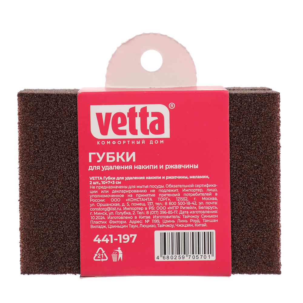VETTA Губки для удаления накипи и ржавчины, меламин, 2 шт, 10х7х3см 441-197