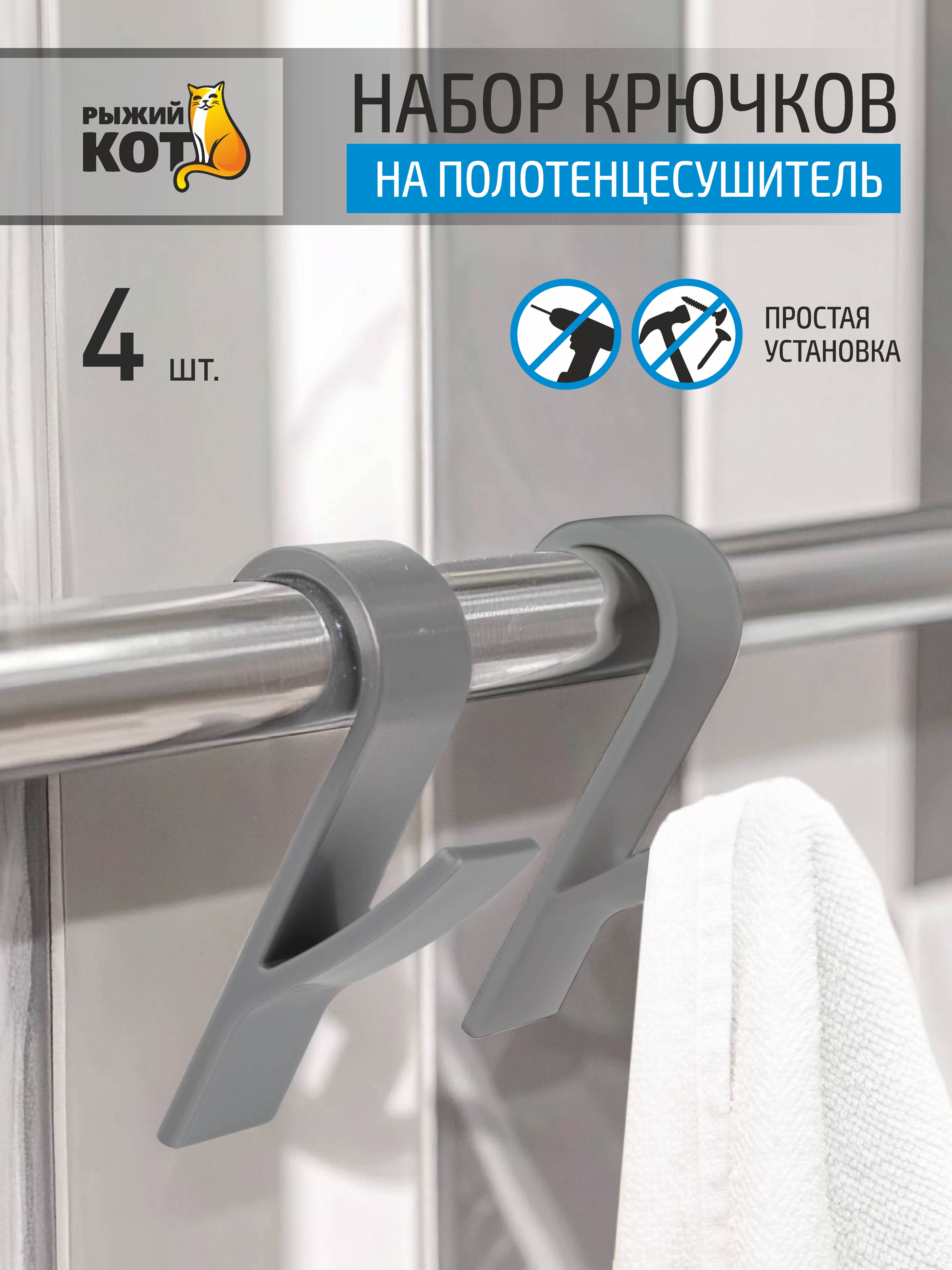 Набор крючков на полотенцесушитель (4 шт), 9,6*2,5*3 см, серый 109690