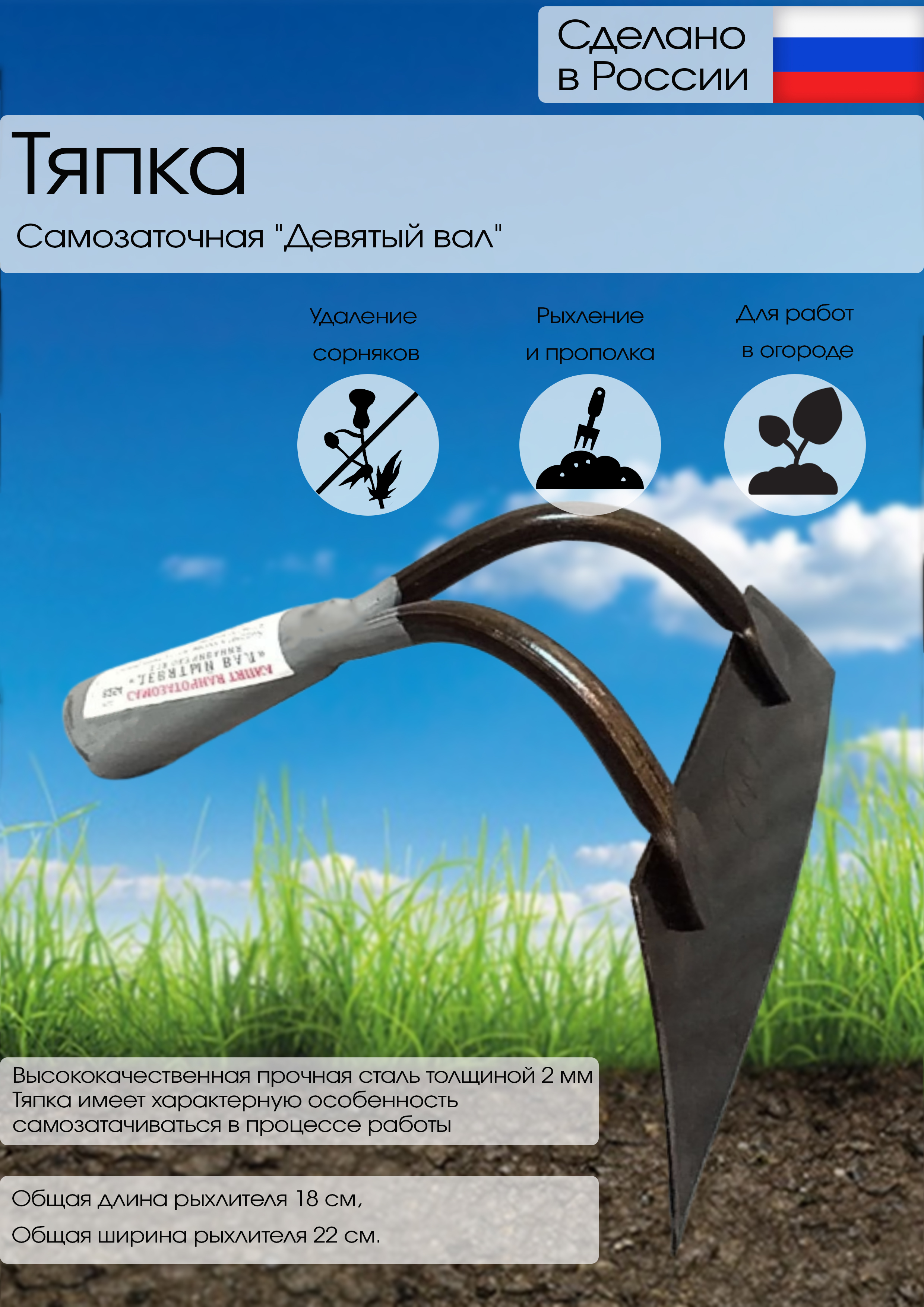 Тяпка имеет характерную особенность самозатачиваться в процессе работы.
