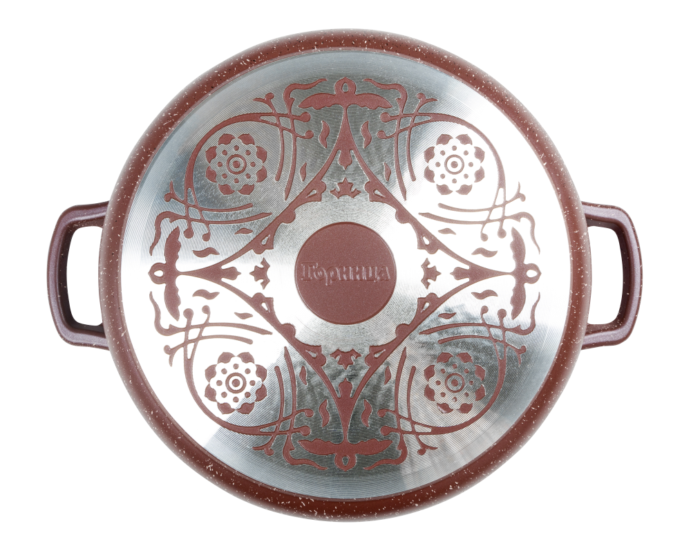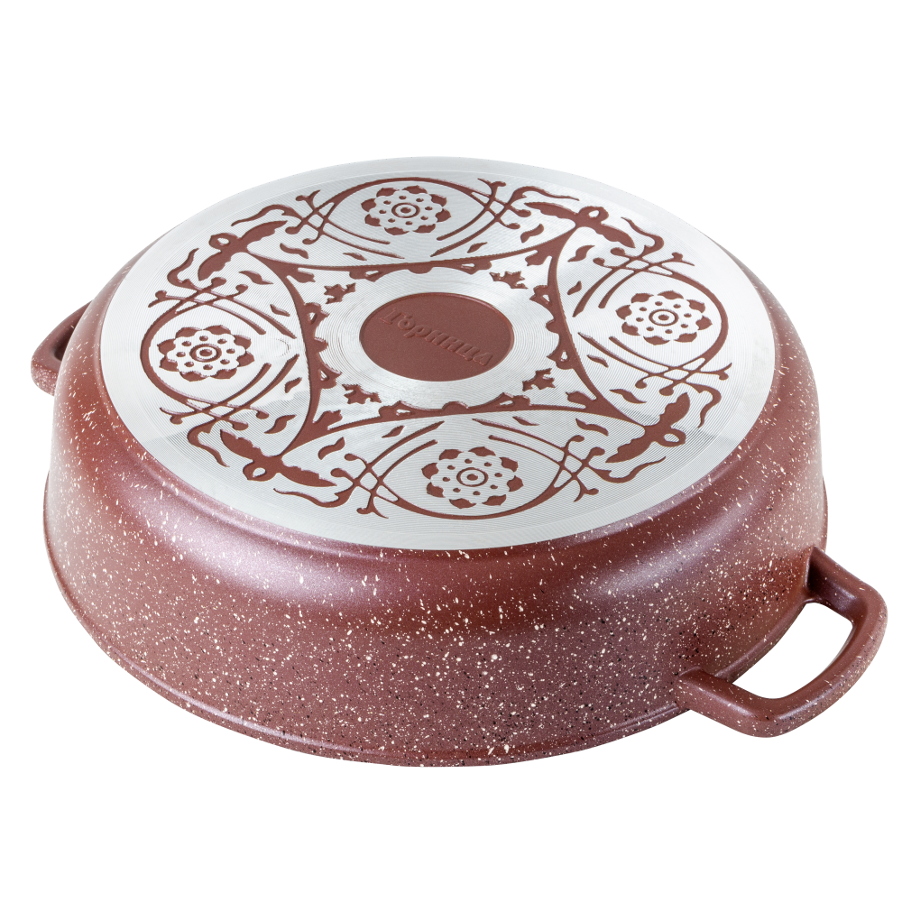 Посуда не деформируется при нагревании. Антипригарное покрытие на водной основе без вредных химических соединений: экологично и безопасно. Мелкие царапины не влияют на безопасность антипригарного покрытия. В жаровне можно готовить без масла, ее легко мыть.