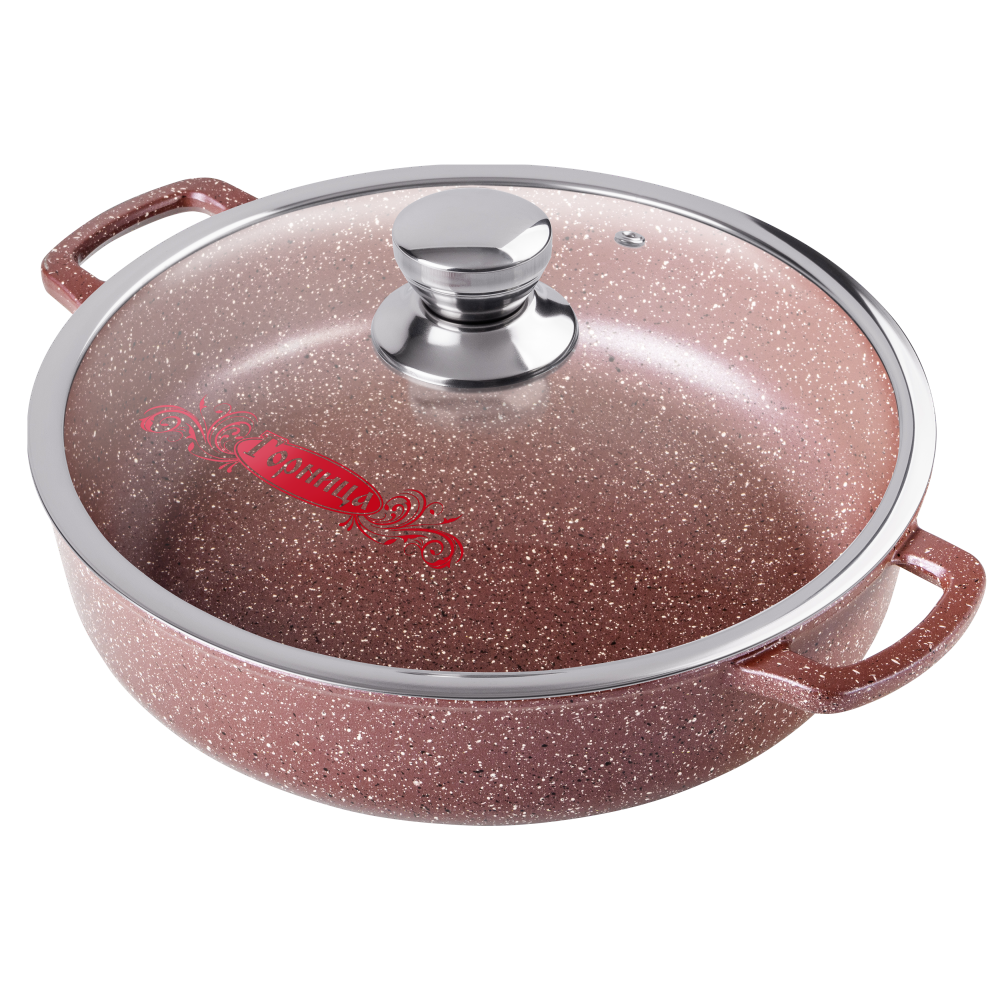Также в ней можно приготовить плов рагу, жаркое или даже испечь пирог. «Классик». Базовая коллекция с однотонным чёрным покрытием. Трёхслойное антипригарное покрытие гарантирует долгий срок службы и качественное приготовление блюд. Литой пищевой алюминий не имеет канцерогенных веществ и посторонних запахов. Толстые стенки и дно обеспечивают равномерное приготовление блюда.