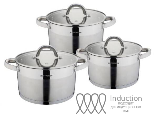Набор кастрюль, нержавеющая сталь, капс. дно, 6 пр.(кастрюли 3шт-1,9л, 2,7л, 3,6л) НМ 5908