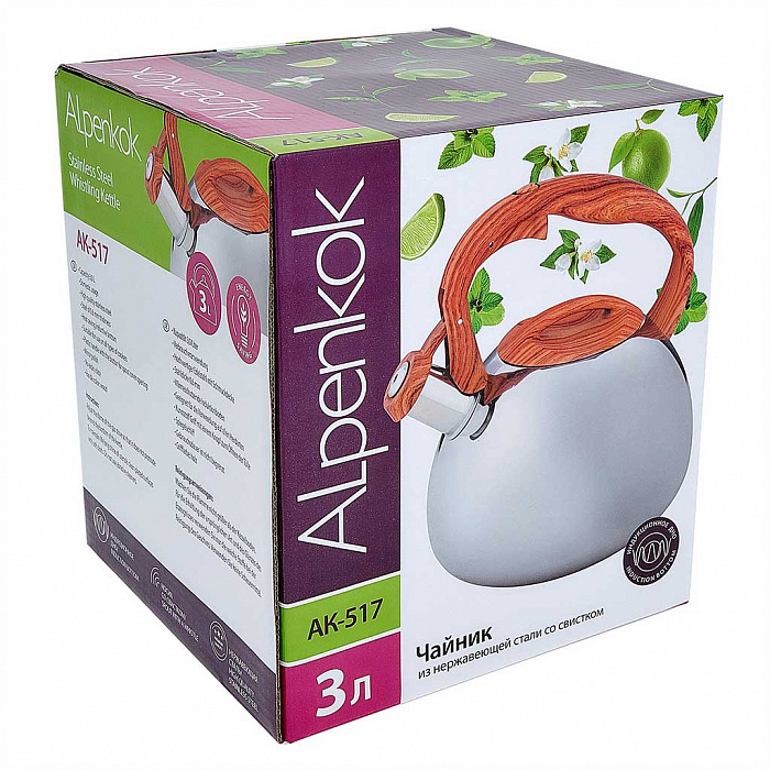 Чайник для плиты 3,0л нержавеющая сталь АК-517 со свистком