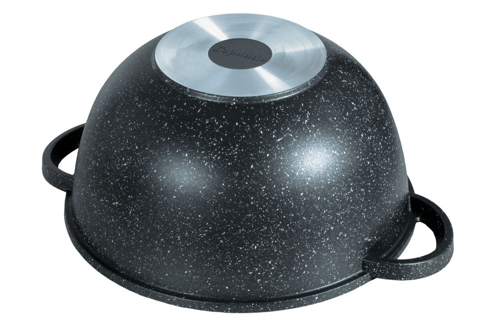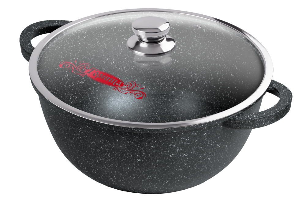 Казаны с цельнолитыми ручками можно использовать в духовом шкафу.«Гранит». Коллекция посуды с улучшенным четырёхслойным антипригарным покрытием. Дополнительный слой с мраморным эффектом увеличивает износостойкость и создаёт оригинальный оттенок чёрного мрамора.Литой пищевой алюминий не имеет канцерогенных веществ и посторонних запахов.Толстые стенки и дно обеспечивают равномерное приготовление блюда.Посуда не деформируется при нагревании.Антипригарное покрытие на водной основе без вредных химических соединений: экологично и безопасно.