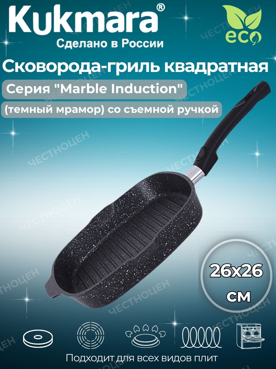 Сковорода-гриль кв. 260*60мм со съемной ручкой АП(темный мрамор) линия "Marble Induction" сгкмти261а
